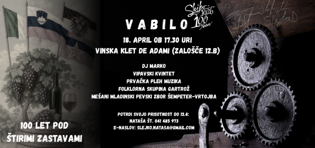 Ob praznovanju 100-letnice je družina Slejko pripravila poseben dogodek, kjer bomo skupaj obudili spomine, tradicijo in zgodbe njihovih prednikov.